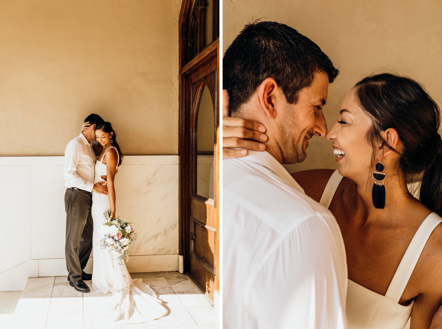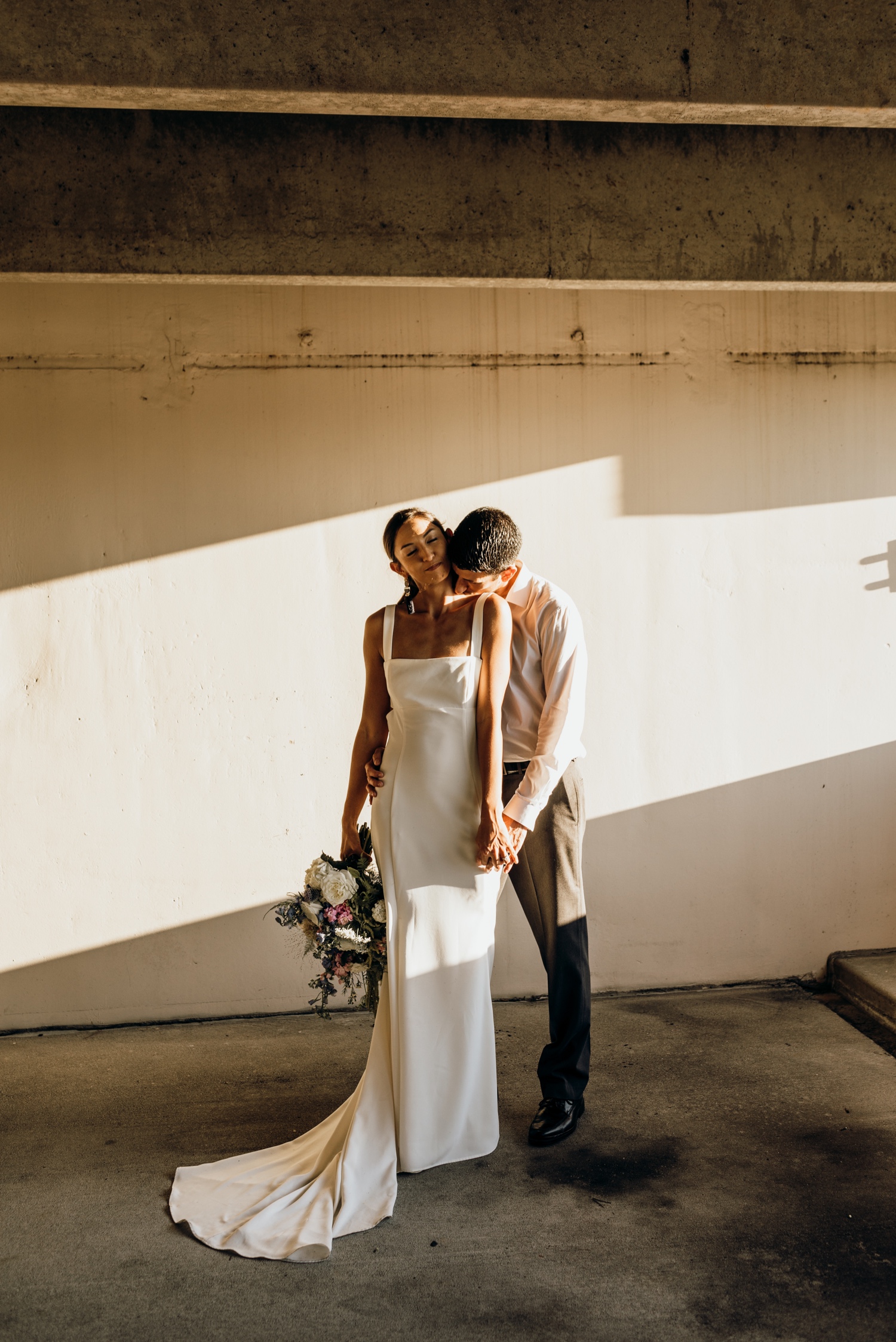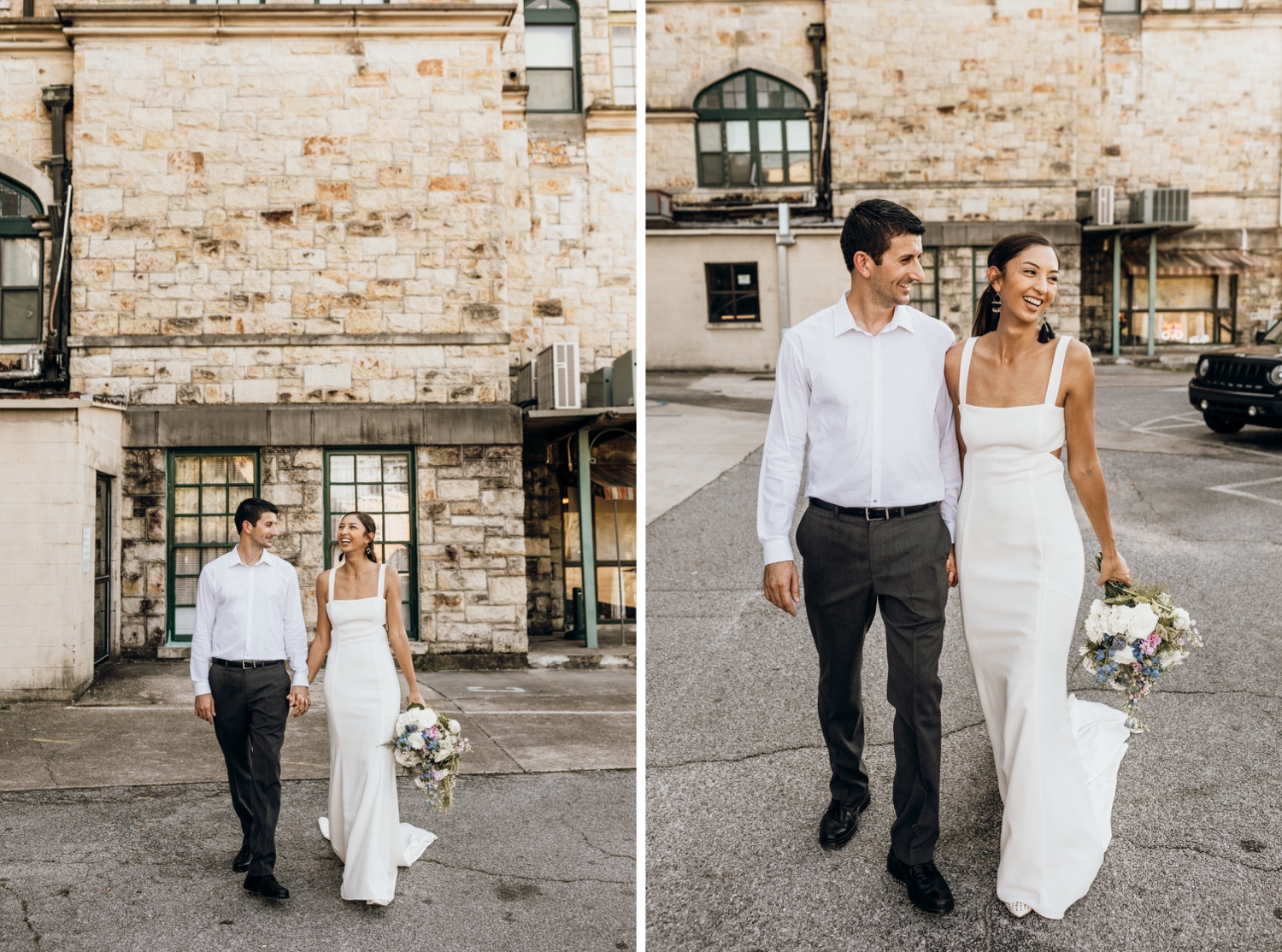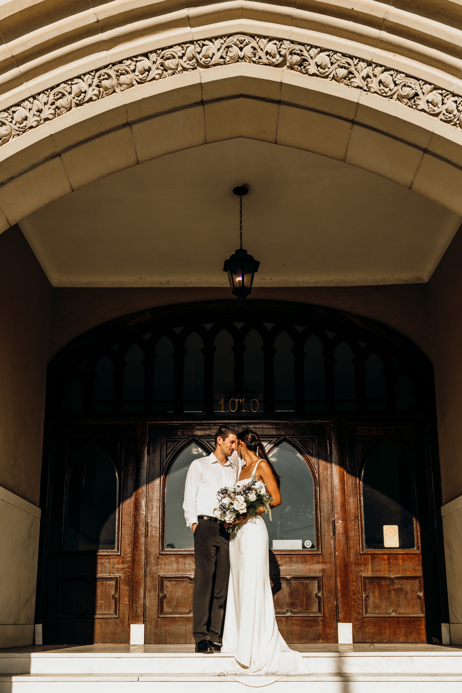 Your typical wedding day only leaves a little bit of time for you and your boo to enjoy together, let alone take incredible wedding-day portraits! Your traditional Pensacola wedding day is usually set in a historical church and an iconic industrial venue downtown. Mix up your day-after sesh with a twist on your typical bridal portraits- an eclectic bouquet paired with a modern dress keeps your photos casual so you can focus on the two of you and really feel those newly-married moments! Check out this super cool Old Sacred Heart Hospital Pensacola day-after bridal portraits for some fresh inspo for your day.